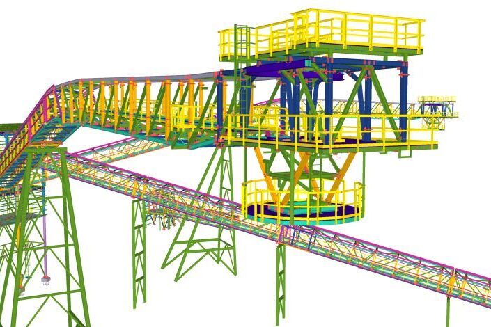 BIM modelling to manufacture metallic structures and piping engineering in mine handling material.