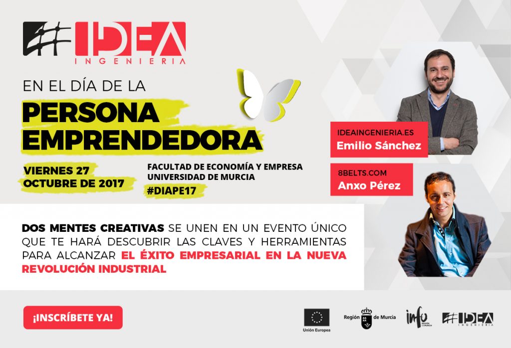 El próximo viernes 27 de octubre la Facultad de Economía y Empresa de Murcia, celebrará el Día de la Persona Emprendedora 2017 (DIAPE), organizado por el INFO (Instituto de Fomento de la Región de Murcia) y la Región de Murcia. Un evento reconocido a nivel nacional dirigido a emprendedores, pequeñas y medianas empresas de reciente creación, estudiantes y organismos, que se lleva organizando en la Región de Murcia desde el año 2006.