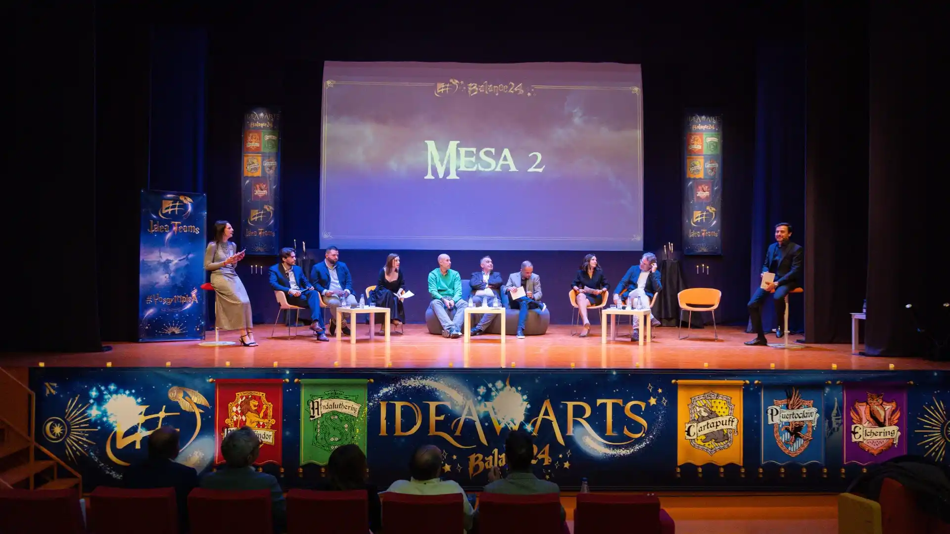 Un año más, estamos listos para dar inicio a nuestro esperado balance anual. Esta vez, la magia será protagonista. Al llegar, nuestros ideadores fueron recibidos por la alumna más sobresaliente de IDEAWARTS, quien los acogió en la puerta de la Sala B con una cálida bienvenida. Allí les entregó su bandera y una varita luminosa, porque esta velada estará cargada de hechizos y sorpresas.