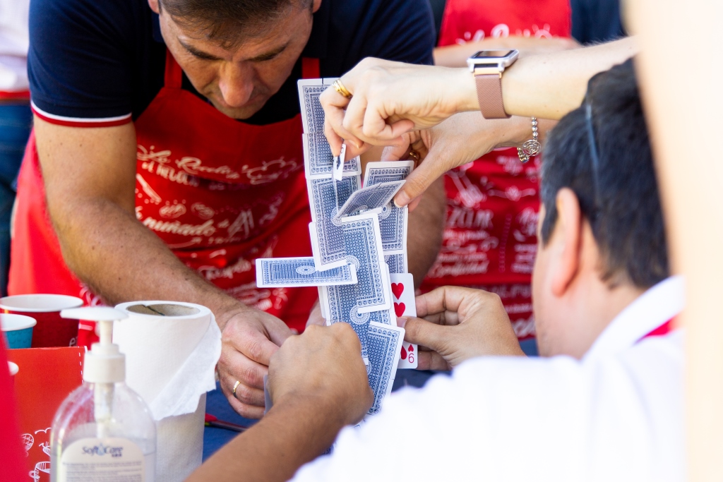 Tras presenciar los fallidos o acertados intentos de mantener el huevo intacto, se dio paso al segundo experimento: realizar una torre de cartas lo más alta posible. A mayor altura, más ingredientes para el desafío final.