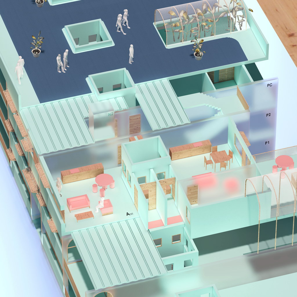 - Tipología de vivienda flexible: se facilita la convivencia de diversos programas residenciales (viviendas familiares de varios tamaños) para acoger colectivos o necesidades específicas con el fomento de tipologías flexibles y adaptables a diferentes formas de habitar.